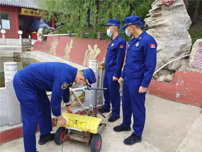 每年农历四月十八,长白县灵光寺都会举行盛大的庙会,期间香火旺盛,来往人流量高。为切实做好此次消防安全保卫工作,为参加庙会的群众提供安全的活动环境,确保庙会期间人民生命财产的安全,防止发生各类安全事故,两江消防救援站高度重视,精心部署,前往庙会现场开展消防安保工作,6月5日,两江消防救援站始终坚守在一线,执勤在前沿,全力保障庙会的顺利开展。