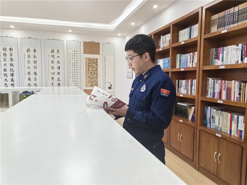 读书活动中,全体队员积极参与,消防站本着丰富全体消防救援人员知识储备的原则,定期或不定期开展读书活动,从哲学、宗教、社会科学、政治、法律、军事、文学等方面入手,不限数量,通过每次活动相互推荐好书,交流读书学习体会。以“我读书、我快乐”的心态,在做好执勤备战、日常训练等工作的同时,依照个人喜好,阅读中外优秀书籍和报刊杂志,让队员们在活动中陶冶情操,获取知识,释放压力,进一步提高消防救援人员文化水平和思想政治觉悟,培养勤于读书、善于思考的好习惯。