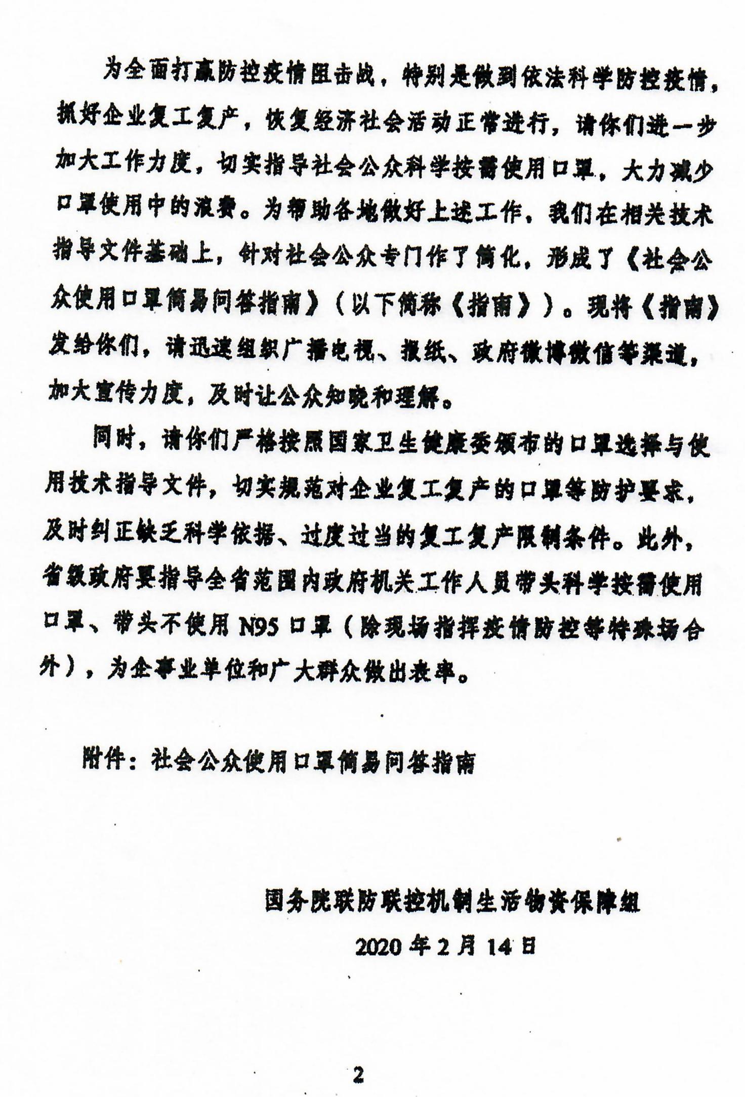 转发关于指导社会公众科学按需使用口罩