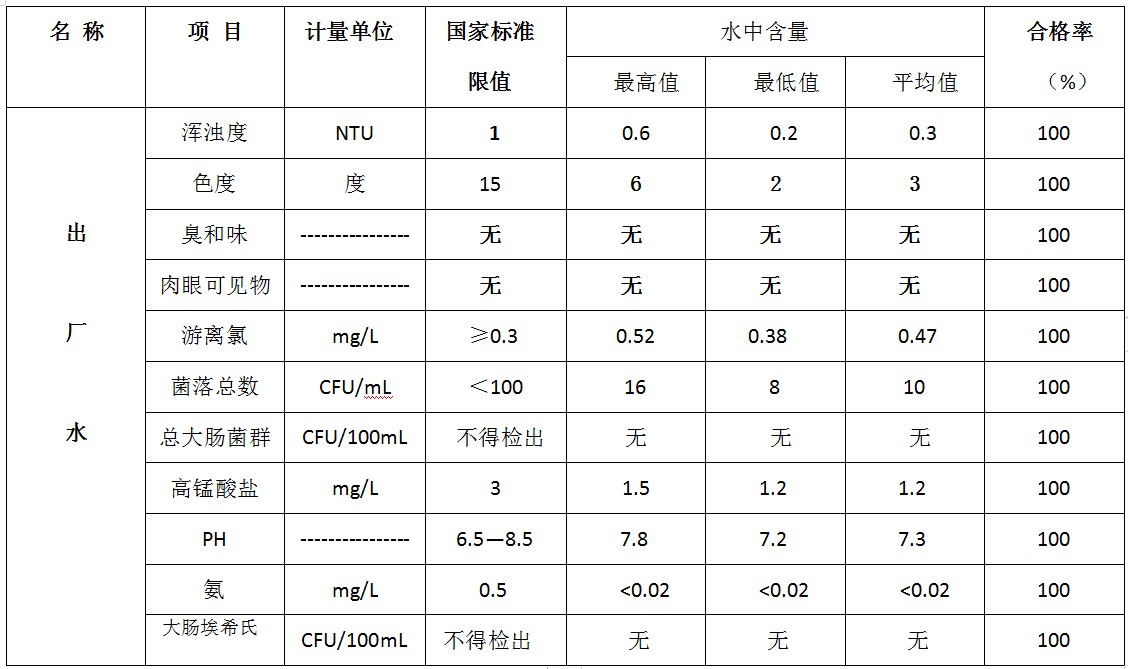 清源供水公司出厂水(2024.7.1—2024.7.31)水质信息