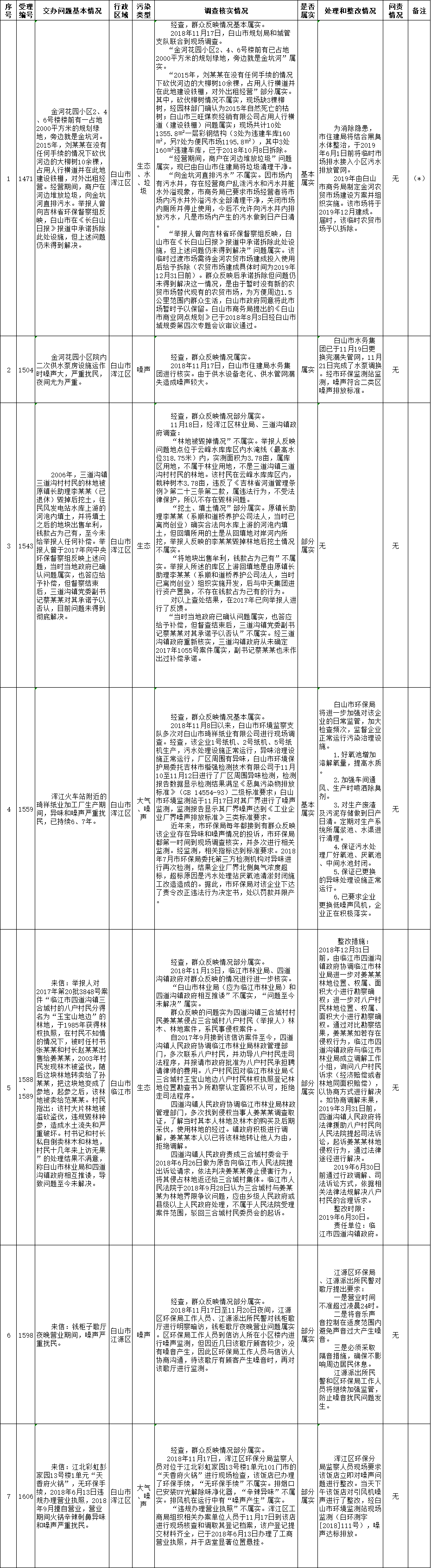 白山市群众信访举报转办和边督边改公开情况一览表(第11批 2018年11月25日)