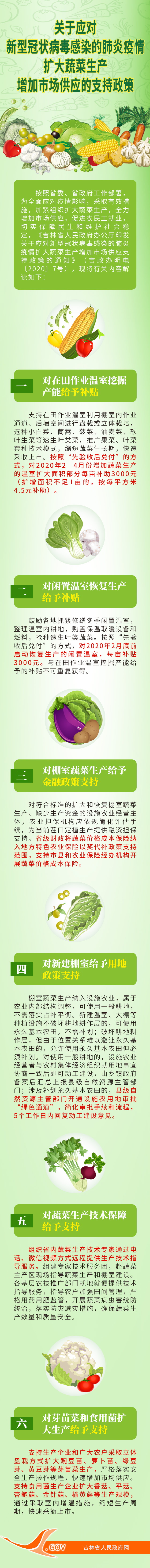 吉林省人民政府办公厅印发关于应对新型冠状病毒感染的肺炎疫情扩大蔬菜生产增加市场供应支持政策的通知