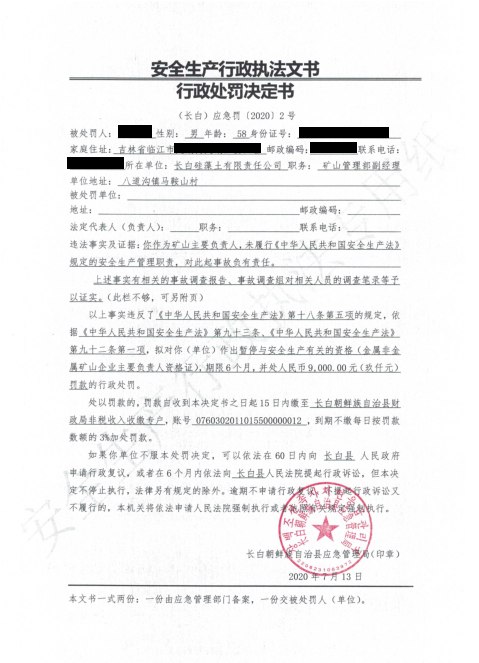 (长白)应急罚【2020】2号