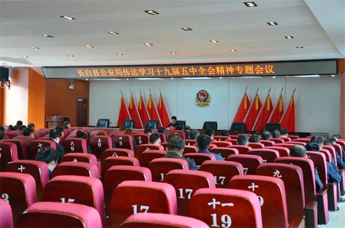 11月20日上午,长白县公安局召开专题会议传达学习党的十九届五中全会精神,全面部署学习宣传贯彻落实工作。副县长、公安局长刘永新主持会议并讲话。在家的局党委成员、各部门负责同志及部分民警代表参加会议。