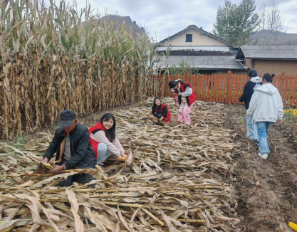 活动当天,志愿者们走进金灿灿的玉米地,大家挽起裤腿开始忙碌起来,尽管天气微凉,但志愿者们热情高涨。他们穿梭在玉米行间,掰玉米、运玉米,有条不紊地忙碌着,村民们用沾满老茧的双手,向志愿者们传授掰玉米的诀窍,志愿者则用手机记录着丰收的喜悦。此起彼伏的掰玉米声与年轻的笑声交织,构成秋日里最动人的乐章。这种从“旁观者”到“参与者”的转变,让许多志愿者对“劳动创造价值”有了更深刻的理解。