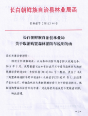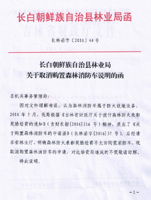 长白朝鲜族自治县林业局关于取消购置森林消防车的说明