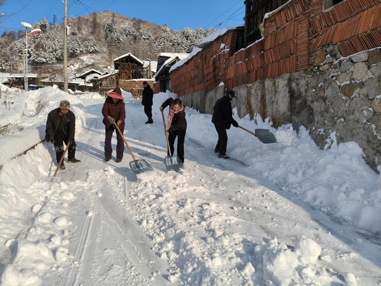 清雪工作采用“机械开路+人工细化”模式,大型挖机高效清理主次干道积雪,工作人员手持铁锹、雪铲、扫帚等工具铲除路面残留积冰。对G331国道、各主干道、学校周边、村口要道等重点区域进行全面清扫,严格落实“先主后次、先通后净”开展扫雪除冰工作,最大限度地保障居民安全。同时,通过村(社区)网格群引导居民群众注意出行安全,严防意外情况的发生,全力保障居民生产生活平稳有序。